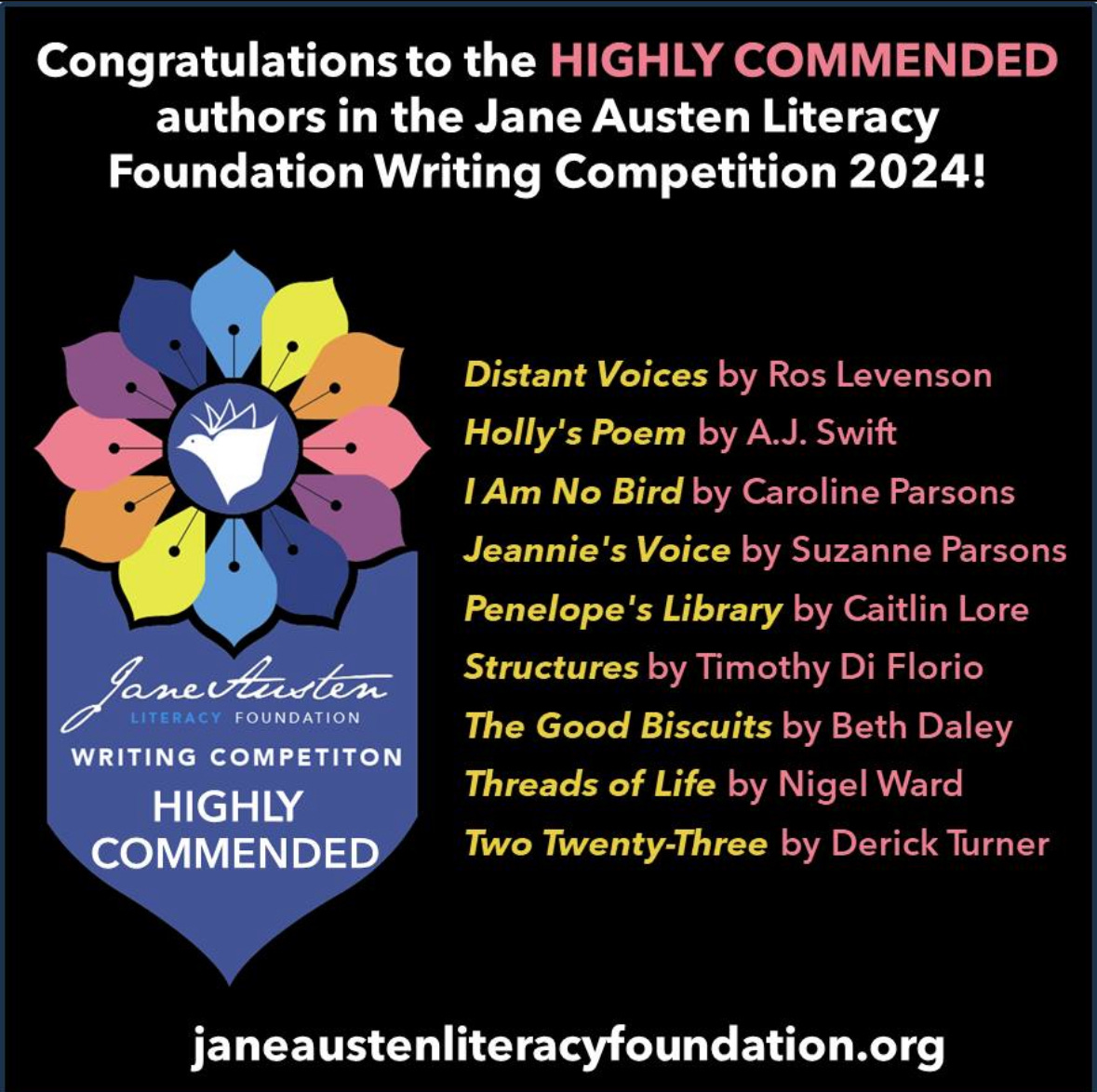 I think the most fun part is that because it was long listed, it made it to the second round of judges, one of whom was Jane Austen’s 5th great niece who started the literacy foundation! So now I have a fun little photo to print out and hang on my wall, and I’ll be sharing my story here later this month!